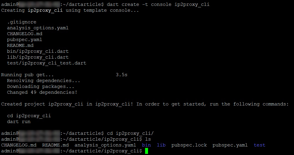 dart create -t console ip2proxy_cli