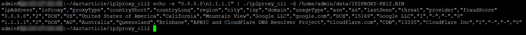 echo -e "8.8.8.8\n1.1.1.1" | ./ip2proxy_cli -d /home/admin/data/IP2PROXY-PX12.BIN